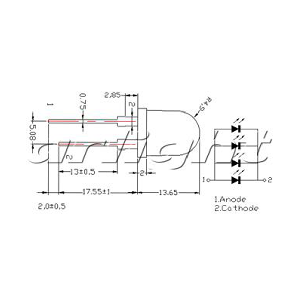 Выводной круглый мощный светодиод, d=10 мм, прозрачная линза. Цвет свечения белый (6500-7500 К), 4 кристалла. Угол излучения 20°. Световой поток 17-25 лм при If=80 мА. VF=3-3.6 В.