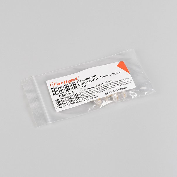| 046944 | Коннектор COB-MONO-10mm-2pin-STS (Arlight, Прозрачный) |