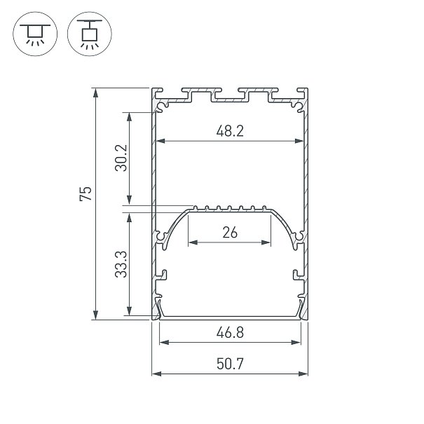 Профиль LINE-S-5075-2500 ANOD (Arlight, Алюминий)