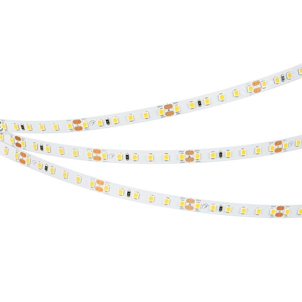 Светодиодная лента RT серии A120. Светодиоды SMD 2835, 120 шт/м, белая плата шириной 8 мм, скотч 3M. Цвет ДНЕВНОЙ 4000K, индекс цветопередачи CRI>85, угол 120°. Питание 24 В, мощность 9.6 Вт/м (48 Вт на 5 м). Размеры 5000x8x1.5 мм. Мин. отрезок 50 мм, 6 светодиодов. Цена за 1 м. Рекомендуется установка на профиль.