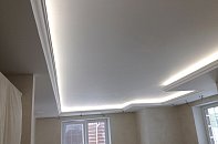 Может использоваться с любыми профилями. Встроенные линии света для основного освещения. Накладные и подвесные светильники из алюминиевого профиля.