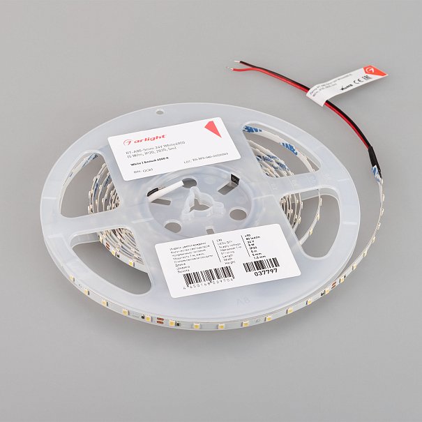 | 037797 | Светодиодная лента RT-A80-5mm 24V White6000 (5 W/m, IP20, 2835, 5m) (Arlight, Открытый) 80 led на 1м |