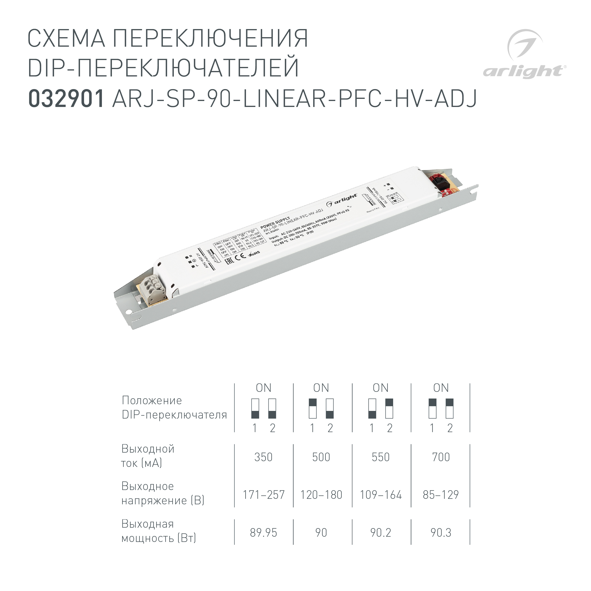 | 032901 | Блок питания ARJ-SP-90-LINEAR-PFC-HV-ADJ (90W, 350-700mA) (Arlight, IP20 Металл, 5 лет) |