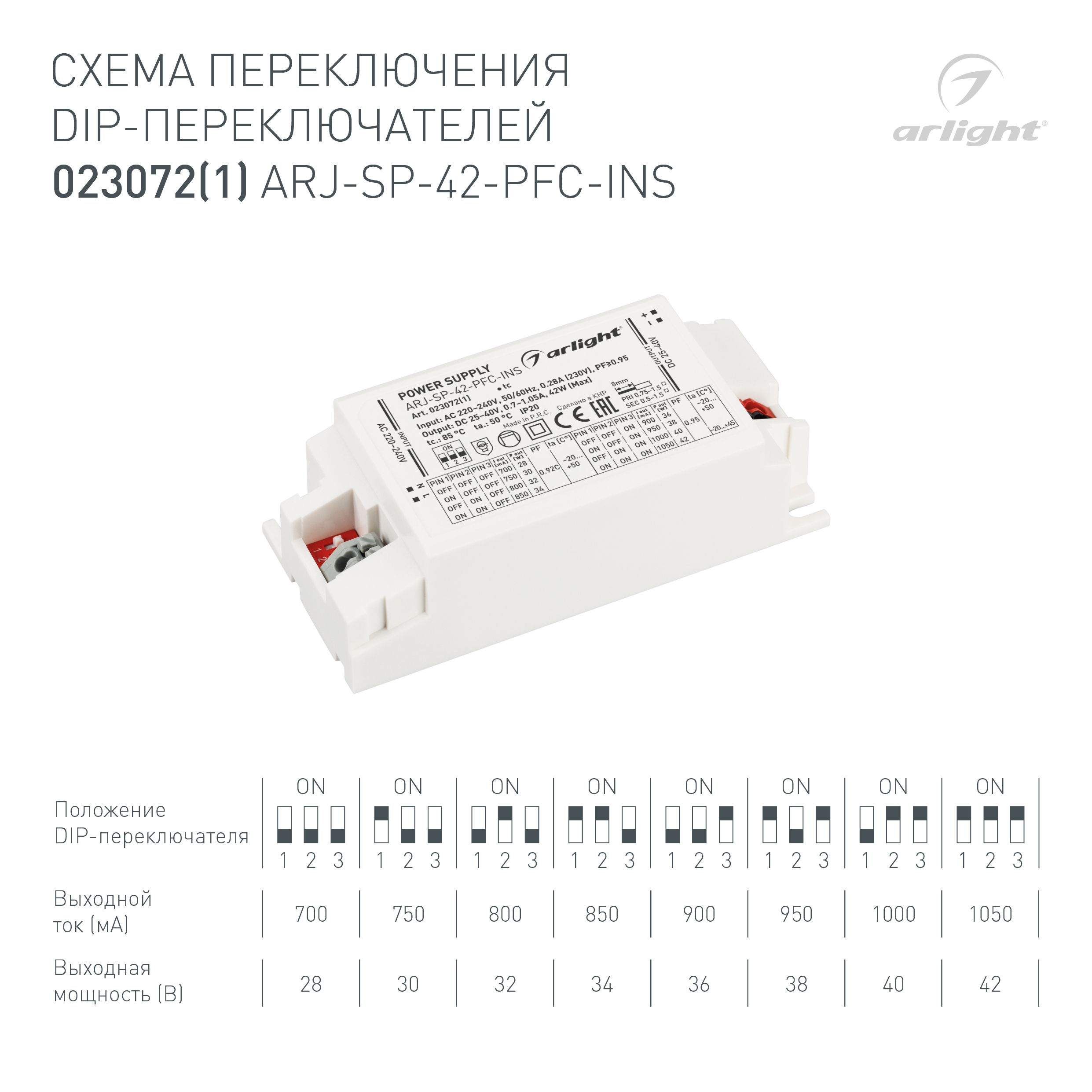 | 023072(1) | Блок питания ARJ-SP-42-PFC-INS (42W, 25-40V, 0.7-1.05A) (Arlight, IP20 Пластик, 5 лет) |