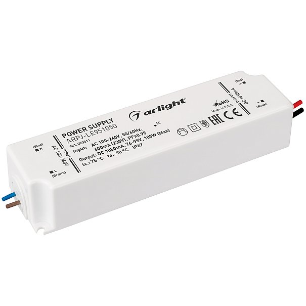 | 023511 | Блок питания ARPJ-LE951050 (100W, 1050mA, PFC) (Arlight, IP67 Пластик, 3 года) |