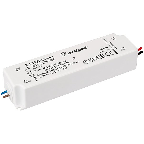 | 023380 | Блок питания ARPJ-LE352800 (98W, 2800mA, PFC) (Arlight, IP67 Пластик, 3 года) |