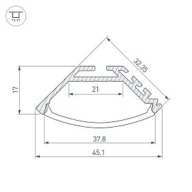 Угловой профиль предназначен для установки в угол 90 градусов, образованный двумя поверхностями. Его удобно применять при подсветке мебели, рабочего пространства на кухне, в ювелирной подсветке. Разные модели могут иметь разный угол наклона площадки для установки светодиодной ленты, благодаря чему можно получить нужное направление освещения.