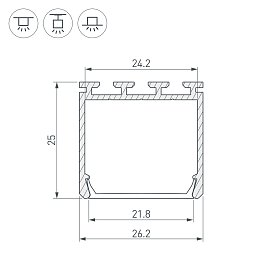 Специализированный профиль поможет создать аккуратную функциональную и декоративную подсветку рабочих зон на кухне, элементов мебели, а также витрин. Небольшие размеры и продуманная конструкция обеспечивают легкую установку в труднодоступных местах. Разный наклон площадки для крепления светодиодной ленты у моделей дает возможность создать освещение с оптимальным направлением светового потока.