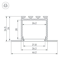 Встраиваемые модели профиля используются для получения линий света вровень с поверхностью, на которой они расположены. Профиль устанавливается в специально подготовленный паз. Модели с фланцем помогут скрыть неровные края монтажного отверстия, а модели для скрытого монтажа получить линии света без видимых частей профиля. Может применяться как для основного освещения, так и для декоративной подсветки.