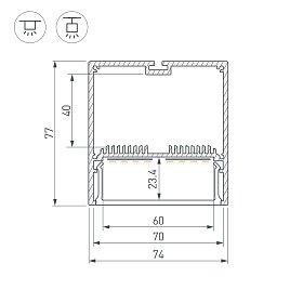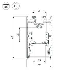 Подвесной профиль монтируется к потолку с помощью специальных подвесов. Используется для создания подвесных линейных светильников, оригинальных световых инсталляций. Благодаря возможности регулировать длину подвесов, профиль можно применять в помещениях с потолками разной высоты, создавать разноуровневые конструкции. Особенно эффектно смотрится в больших помещениях, а также для освещения зон ресепшн и отдыха, барных стоек.