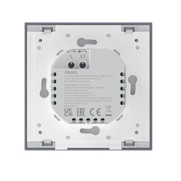 | WS-EUK01 | Умный настенный выключатель H1 EU(без нейтрали, 1 клавиша) | Aqara Smart Wall Switch H1 EU (No Neutral, Single Rocker) |