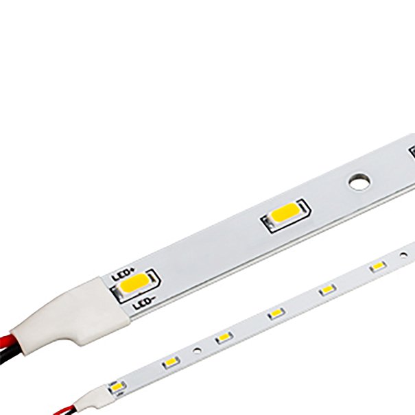 Под заказ от 1000шт. Светодиодная линейка на светодиодах Epistar smd 5730, 27шт/м. Алюминиевая плата толщиной 1.0 мм. Цвет БЕЛЫЙ 6000К, св.поток 1140лм, угол 120°, цветопередача CRI>85. Питание постоянный ток 300мА, VF22.5-30V, мощность 8 Вт. Размеры 550х10х1.0 мм.