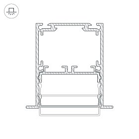 Встраиваемые модели профиля используются для получения линий света вровень с поверхностью, на которой они расположены. Профиль устанавливается в специально подготовленный паз. Модели с фланцем помогут скрыть неровные края монтажного отверстия, а модели для скрытого монтажа получить линии света без видимых частей профиля. Может применяться как для основного освещения, так и для декоративной подсветки.