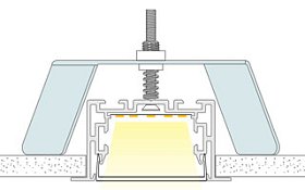 Профиль для подсветки полов и тротуаров выполнен из высокопрочного алюминия, устойчив к статическим нагрузкам. Встраивается в монтажные ниши, закрывается ударопрочным экраном, образуя эстетичные и функциональные световые линии. Благодаря возможности герметизации до индекса IP67 может использоваться во влажных помещениях и на улице. Применяется для световой разметки паркингов, проходных мест в помещениях и в ландшафтном дизайне.