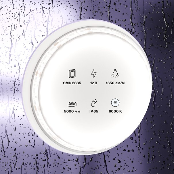 | 10119 | Светодиодная лента 12В 2835 14,4Вт/м 6000K 5м IP65 |