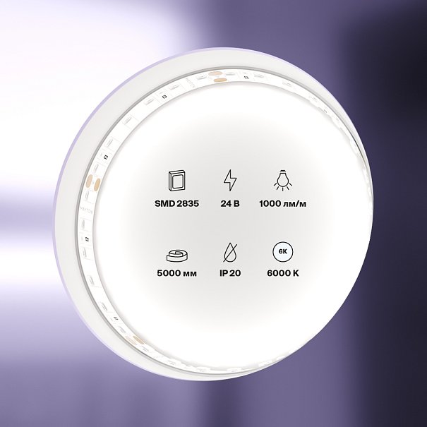 | 10144 | Светодиодная лента 24В 2835 9,6Вт/м 6000K 5м IP20 |
