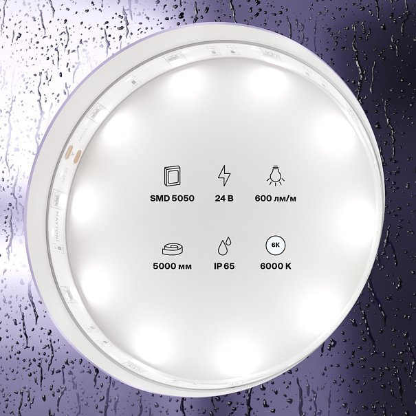 | 10165 | Светодиодная лента 24В 5050 7,2Вт/м 6000K 5м IP65 |