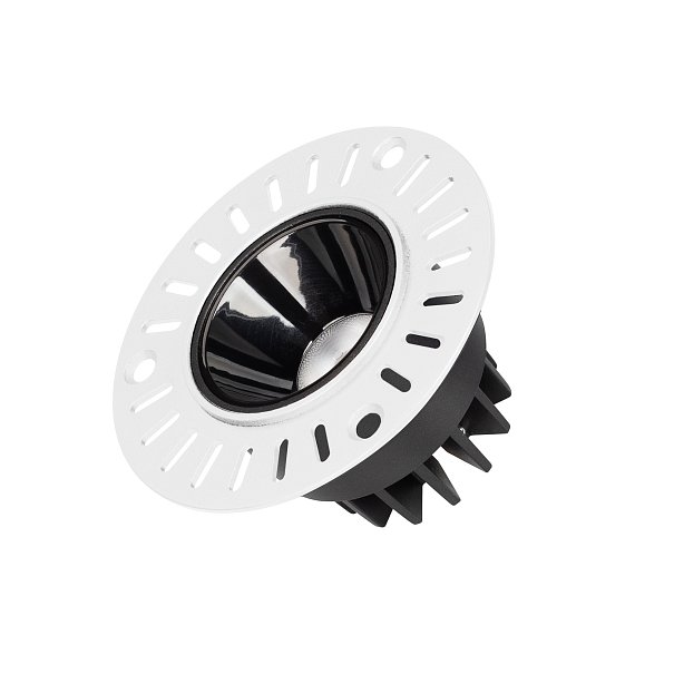 Встраиваемый безрамочный светильник под шпаклевку. Мощность 6.3 Вт, св. поток 455 лм, 72 лм/Вт, тёплый 3000 K, CRI>90, угол 40°, напряжение питания 230 В. Чёрный круглый корпус из алюминия, черный ГЛЯНЦЕВЫЙ отражатель из PMMA, степень защиты IP20. Размер: диаметр 90 мм, высота 52 мм. Монтаж встраиваемый, установочное отверстие диаметр 65 мм. Драйвер 28-42 В, 150 мА, пульсация <2%.