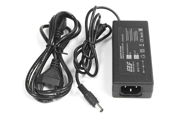 | ELF-Ad12E060-WX | Адаптер сетевой ELF 12В, 5A, 60W (черный корпус) с проводом 1,2м, со штекером 5,5мм |