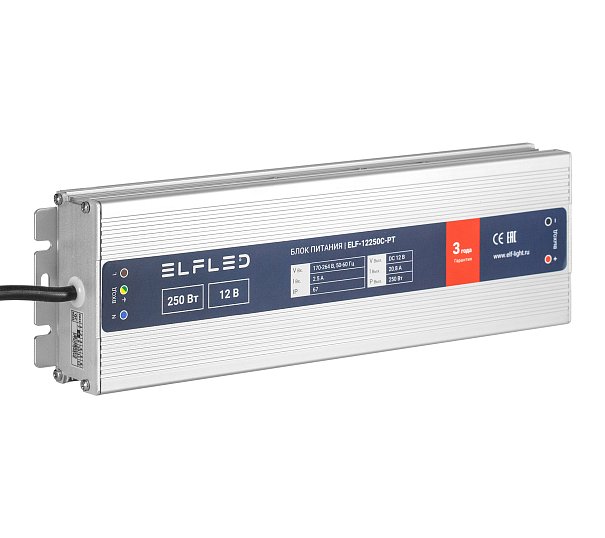 Блок питания герметичный компактный ELF, 12В, 250Вт, металл, IP67 - Артикул ELF-12250С-PT