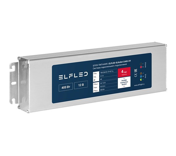 | ELFLED-SLKslim12400-HY | Блок питания герметичный плоский для параллельного подключения ELFLED, 12В, 400Вт, металл, IP68 |