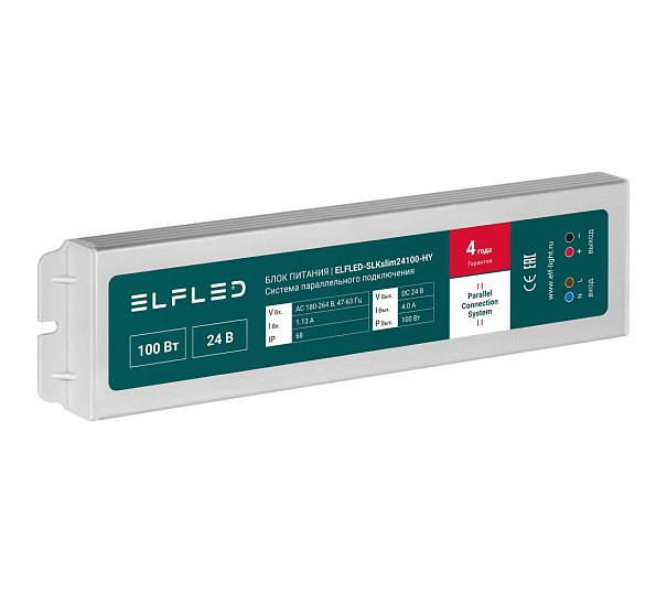 | ELFLED-SLKslim24100-HY | Блок питания герметичный плоский для параллельного подключения ELFLED, 24В, 100Вт, металл, IP68 |