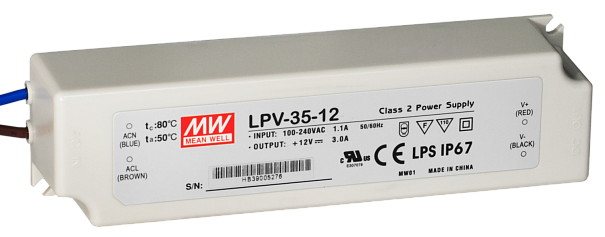 | LPV-35-12 | Блок питания Mean Well, герметичный, LPV-35-12, в пластиковом корпусе |