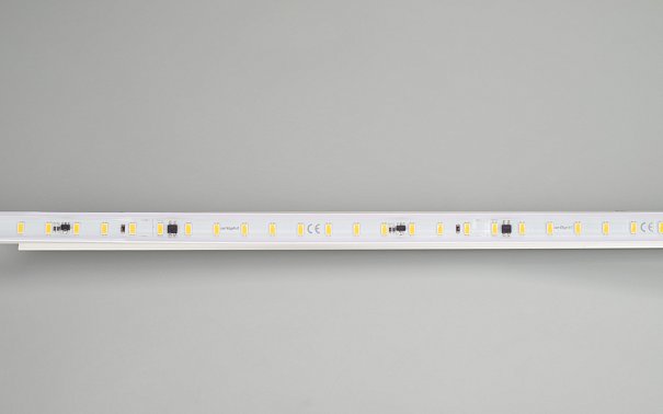 Поставка под заказ от 100 м. Светодиодная герметичная лента ARL серии C72, IP65 (PV - трубка, ПВХ экструзия. Светодиоды SMD 5630, 72 шт/м, белая плата шириной 12 мм. Цвет ТЕПЛЫЙ 2700K, индекс цветопередачи CRI>80, угол 120°. Питание 230 В, мощность 14 Вт/м (700 Вт на 50 м). Размеры 50000x15.5x6 мм. Мин. отрезок 166.67 мм, 12 светодиодов. Цена за 1 м. Светодиодная лента крепится с помощью скоб (приобретаются отдельно), 3M скотч отсутствует.