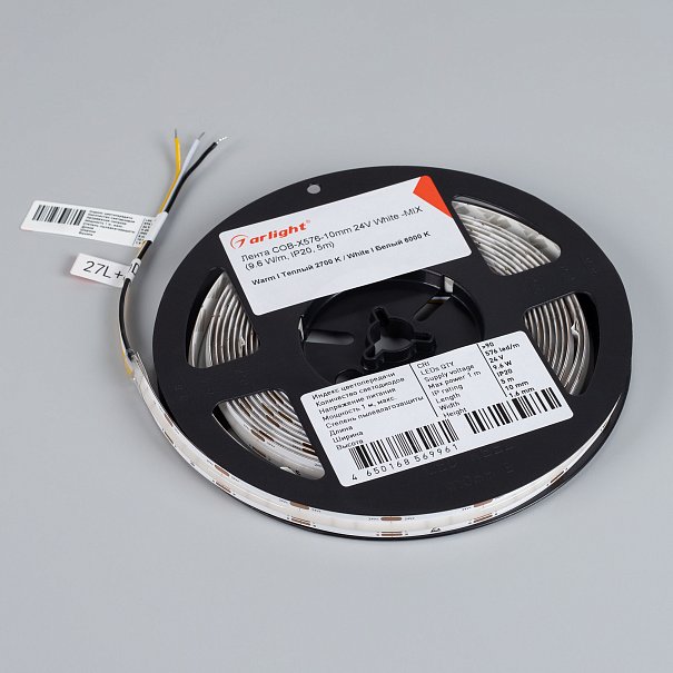 | 045179 | Светодиодная лента COB-X576-10mm 24V White-MIX (9.6 W/m, IP20, 5m) (Arlight, Изменяемая ЦТ) 576 led на 1м |
