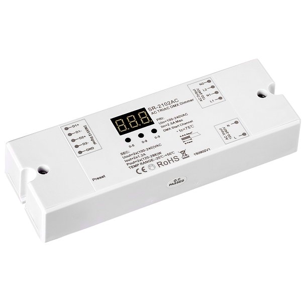 | 020375 | Декодер DMX SR-2102AC (230V, 2x1.2A) (Arlight, IP20 Пластик, 3 года) |