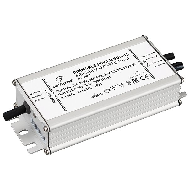 | 024273 | Блок питания ARPV-UH24075-PFC-0-10V (24V, 3.1A, 75W) (Arlight, IP67 Металл, 7 лет) |