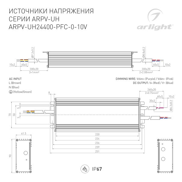 | 031043 | Блок питания ARPV-UH24400-PFC-0-10V (24V, 16.7A, 400W) (Arlight, IP67 Металл, 7 лет) |