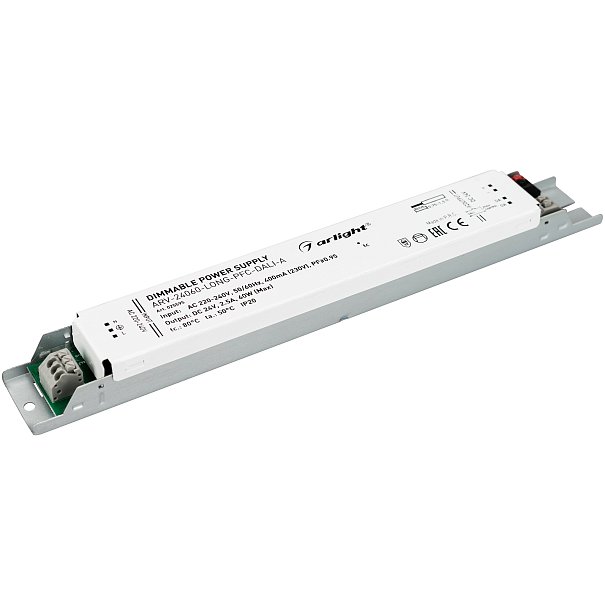 | 025595 | Блок питания ARV-24060-LONG-PFC-DALI-A (24V, 2.5A, 60W) (Arlight, IP20 Металл, 5 лет) |