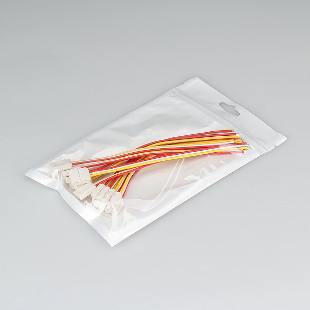 Одиночный коннектор с проводом 15см для подключения питания к открытым светодиодным лентам MIX (тёплый+холодный) шириной 10мм. Материал - пластик. Максимальный допустимый ток 3А, напряжение до 50 В. Цена за 1шт.