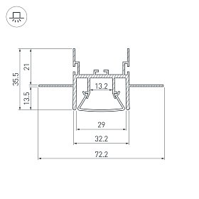 Встраиваемые модели профиля используются для получения линий света вровень с поверхностью, на которой они расположены. Профиль устанавливается в специально подготовленный паз. Модели с фланцем помогут скрыть неровные края монтажного отверстия, а модели для скрытого монтажа получить линии света без видимых частей профиля. Может применяться как для основного освещения, так и для декоративной подсветки.