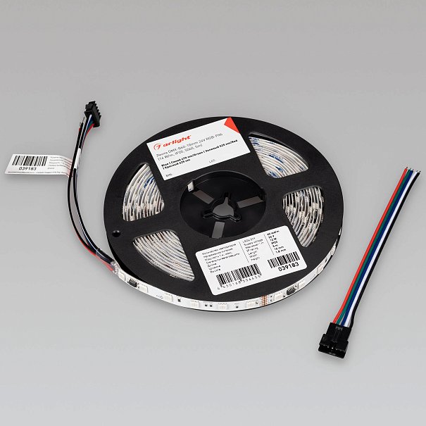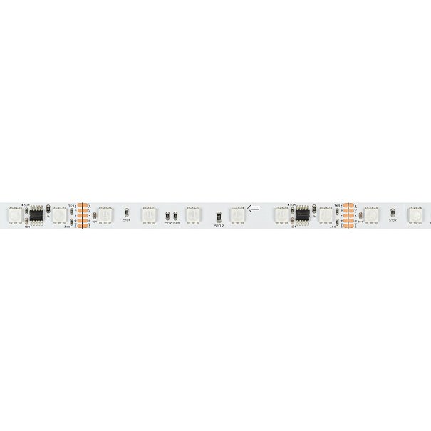 Светодиодная лента DMX серии B60 с микросхемой GS8526. Светодиоды SMD 5060, 60 шт/м, 10 pixels на 1 м (50 pixels на 5 м), 1 pixel = 6 светодиодов, белая плата шириной 10 мм, скотч 3М. Цвет RGB, угол 120°. Питание 24 В, мощность 14 Вт/м (70 Вт на 5 м). Размеры 5000x10x1.8 мм. Мин. отрезок 100 мм, 6 светодиодов. Цена за 1 м.