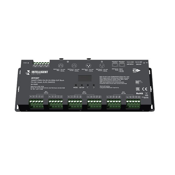 INTELLIGENT ARLIGHT Декодер SMART-PWM-124-83-SH-RDM-SUF Black (12-24V, 24x4A, XLR3, DMX512) (Arlight, IP20 Металл, 5 лет)