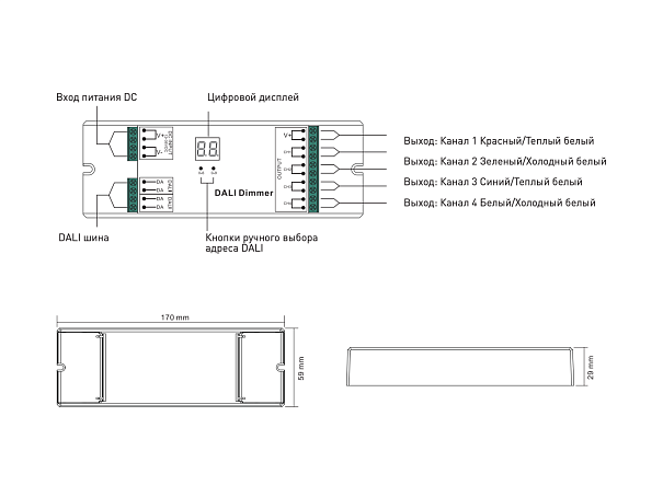 Dali диммер универсальный для лент 4х8А, DALI-DT6-GR4 - Артикул 00-00013177