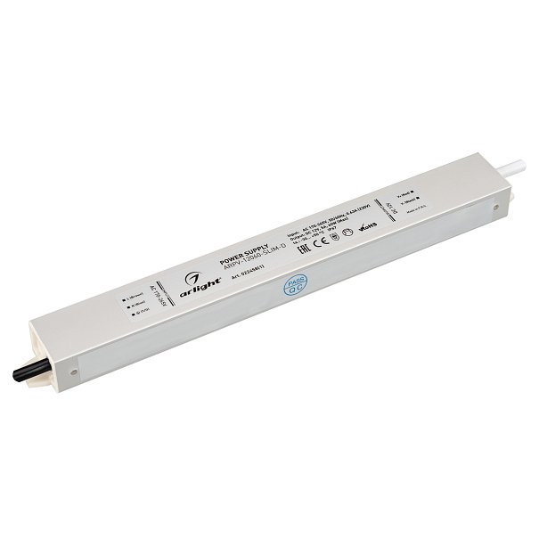 Источник напряжения с гальванической развязкой для светодиодных изделий. Входное напряжение 170-265 VAC. Выходные параметры: 12 В, 5 А, 60 Вт. Встроенный PFC >0,5. Герметичный алюминиевый корпус IP 67. Рабочая температура -30…+50C⁰. Габаритные размеры длина 257 мм, ширина 30 мм, высота 20 мм. Гарантийный срок 3 года.