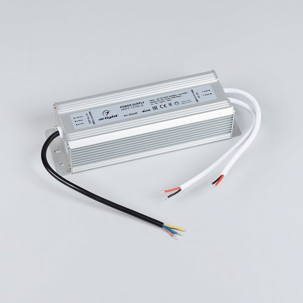 Источник напряжения с гальванической развязкой для светодиодных изделий. Входное напряжение 170-265 VAC. Выходные параметры: 12 В, 12,5 А, 150 Вт. Встроенный PFC >0,5. Герметичный алюминиевый корпус IP 67. Рабочая температура -30…+50C⁰. Габаритные размеры длина 210 мм, ширина 71 мм, высота 46 мм. Гарантийный срок 3 года.