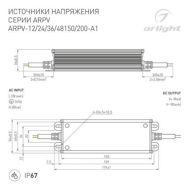 Блок питания ARPV-48200-A1 (48V, 4.2A, 200W) (Arlight, IP67 Металл, 3 года)