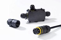 Коннектор пятиконтактный пластиковый для соединения проводов диаметром 4-8 мм, сечением 0,5-4 мм2. Номинальный ток 24 А. Номинальное напряжение 450 В. Степень защиты IP68. Рабочая температура -20 +80°С. Подключение питания без пайки.