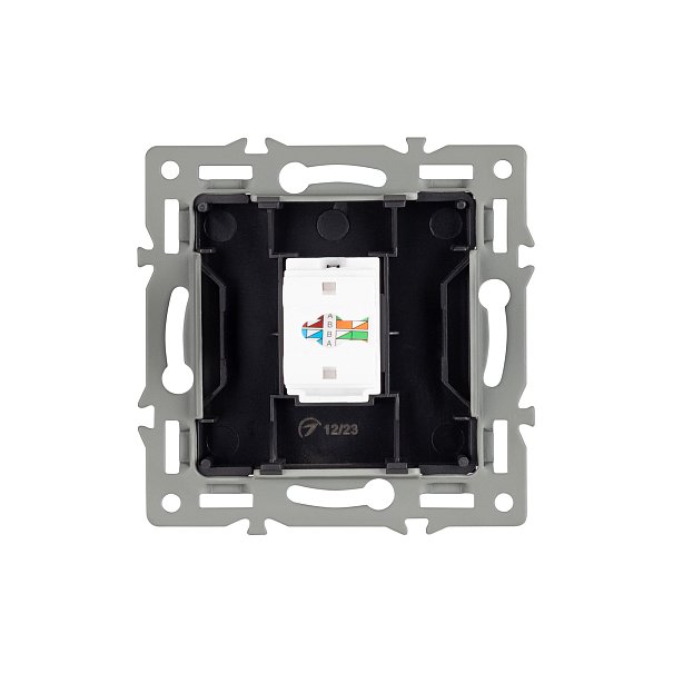 Механизм компьютерной розетки на 1 пост 6-й категории (CAT6), с суппортом из алюминия. Цвет - черный. Степень пылевлагозащиты - IP20. Устанавливается в стандартный круглый подрозетник 220V (Арт.044895). Рабочее напряжение 110-250V. Макс. ток нагрузки 16А. Габаритные размеры: длина 74 мм, ширина 74 мм, высота 40 мм. Гарантийный срок 10 лет.