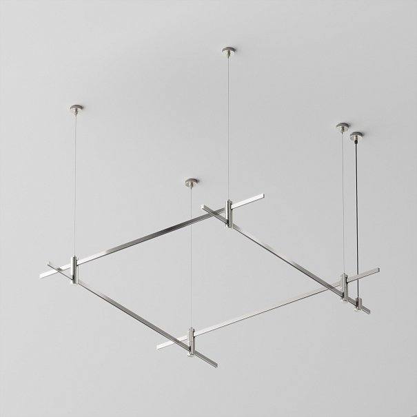 Готовая конструкция квадратная двухуровневая на тросовых подвесах Hang без светильников и блока питания, платина