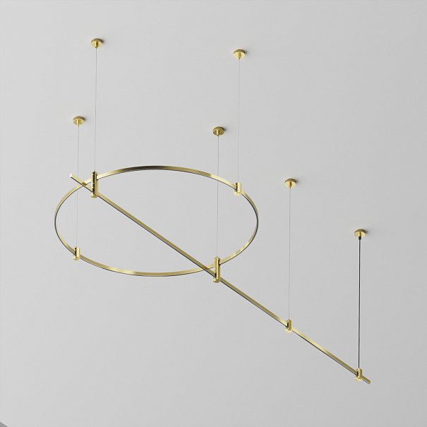 Готовая конструкция круглая + прямая двухуровневая на тросовых подвесах Hang без светильников и блока питания, латунь