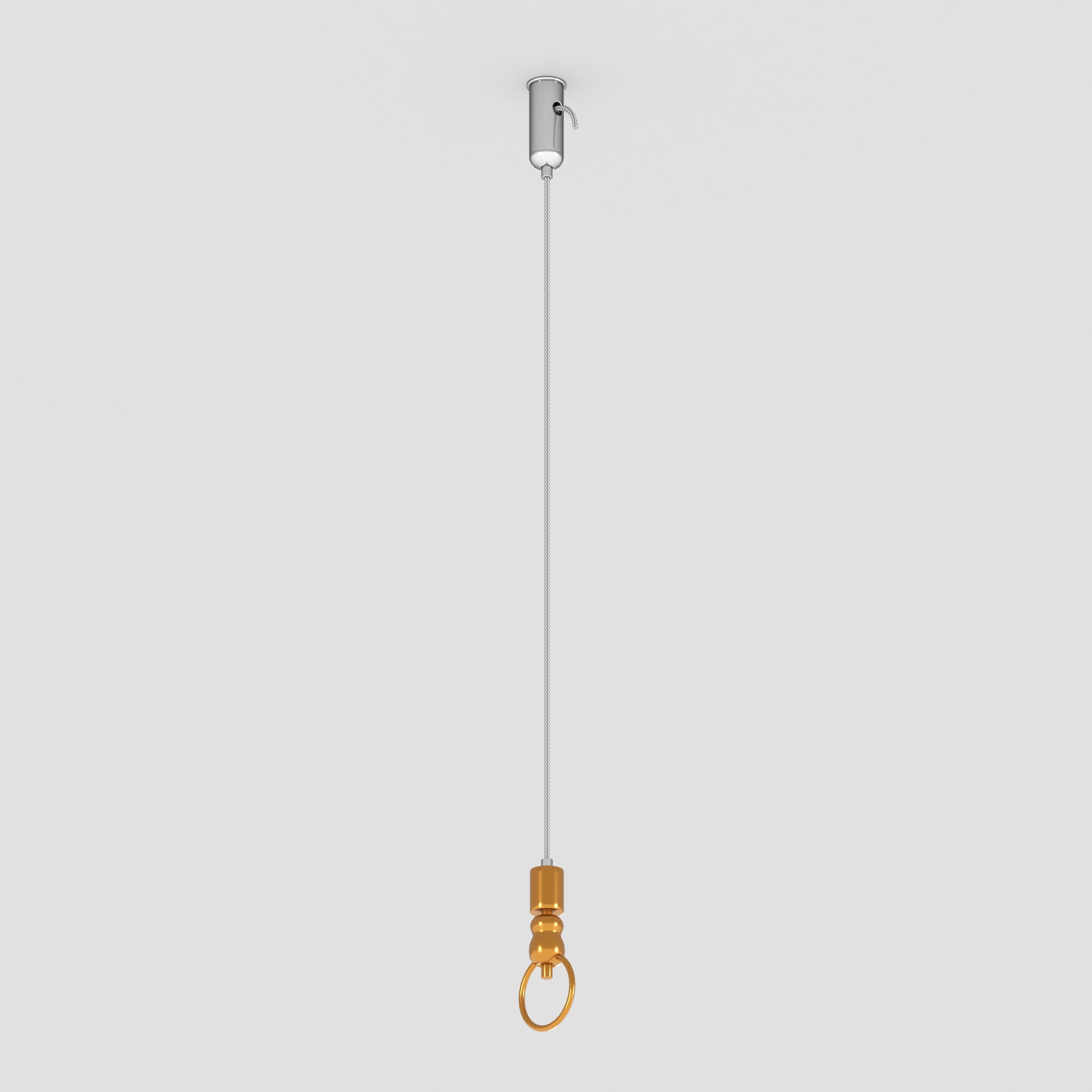 Подвес для светильника SP-TROPIC, длина 1500 мм. Цвет золотой. Комплект состоит из стального троса диаметром 1.5 мм и цангового зажима, декоративного кольца и прижимного стержня. Максимальная нагрузка до 25 кг.