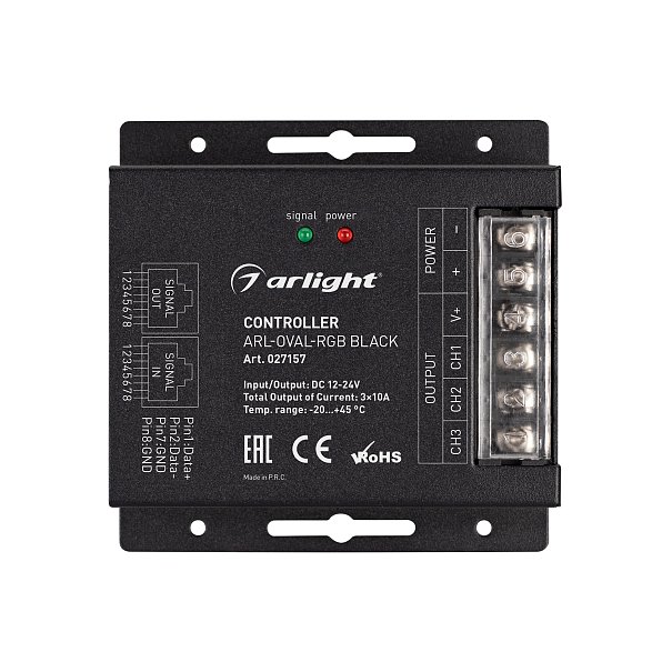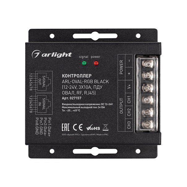 | 027157 | Контроллер ARL-OVAL-RGB Black (12-24V, 3x10A, ПДУ Овал, RF, RJ45) (Arlight, IP20 Металл, 3 года) |