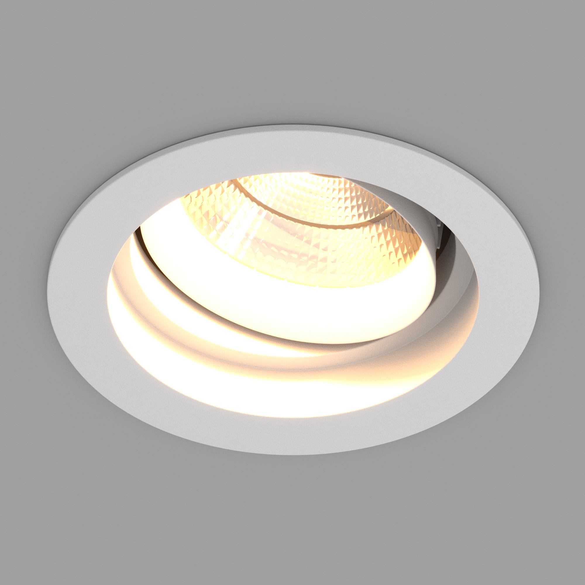 Встраиваемый круглый светильник с наклоняемой осью, угол 30° / 25Вт / ДНЕВНОЙ БЕЛЫЙ 4000K / светодиод 1x25W CREE / 2670 лм. Белая лицевая панель. Питание AC110-240V, драйвер в комплекте 600mA 34-50V). Размеры DxH: 150х115мм, отверстие для установки 128мм.