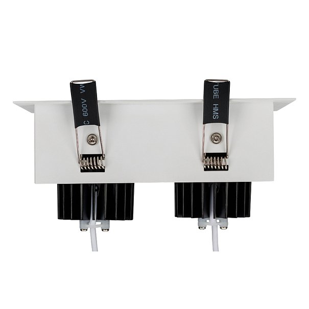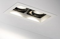 Встраиваемый карданный светильник. Угол 38° / 2x9Вт / ДНЕВНОЙ БЕЛЫЙ 4000K / 1440лм, CRI>80. Корпус из белого алюминия с черными вставками. Питание AC230V, 18Вт, в комплекте 2 драйвера 200mA 30-45V. Размеры LxWxH: 180х102x85мм, отверстие для установки 160x85мм.