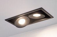 Встраиваемый поворотный светильник для потолка. Мощность 2x9W, цвет ТЕПЛЫЙ 3000K, св.поток 1260лм, угол 45°, RA>90. Корпус прямоугольный белый. Питание AC180-240V. Размеры LxWxH 148x80x90мм. Установка в отверстие 140x70мм. Драйвер в комплекте 2 шт (30-45V, 220mA).